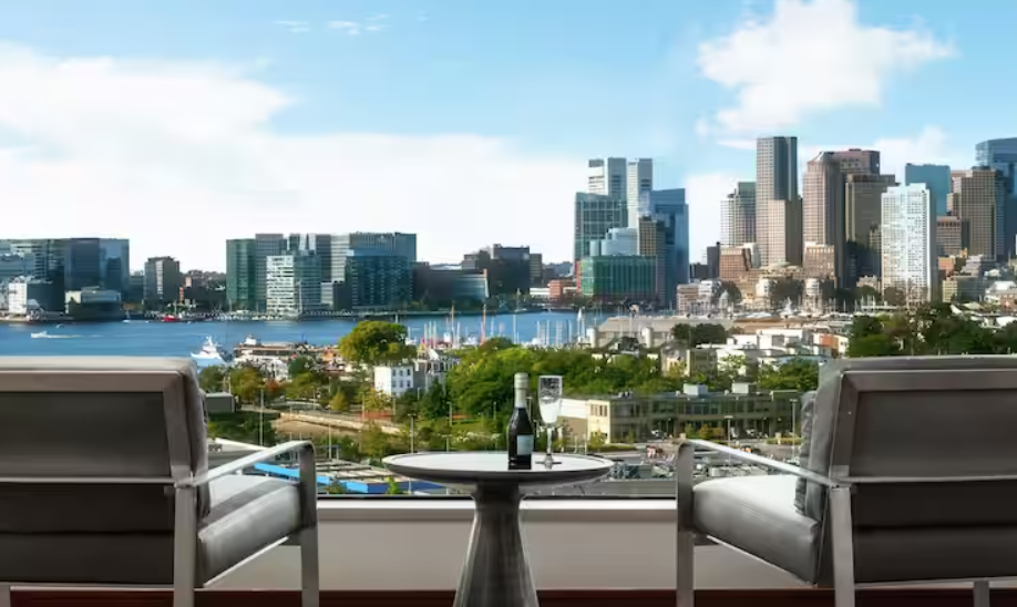 Self parking at the hotel is $54/day and valet is $58/day, click here for details. A covered walkway directly connects the hotel to Boston Logan Airport terminals A and E, and they have a free 24-hour shuttle to all terminals, the subway, water taxi, and car rentals. Downtown Boston is four miles away, and Fenway Park is seven miles away.