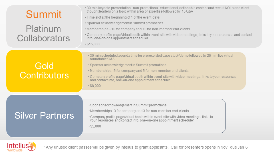 For the Summit, we will be using our robust 2021 event platform again – with recorded sessions at scheduled broadcast times and live speaker interaction & attendee roundtables. It also has virtual exhibits that showcase sponsor resources, a searchable attendee database and easy to use messaging and meeting scheduling. All sessions will then be available to watch on demand until April 30.